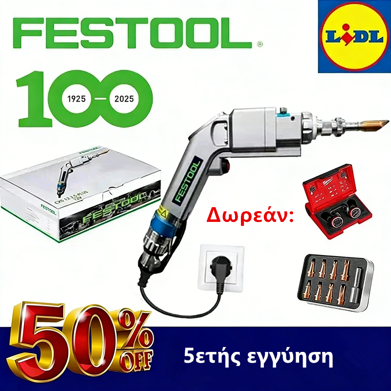 Το 2026, το πρώτο κατάστημα LIDL θα ανοίξει ως σημείο πώλησης FESTOOL, για να γιορτάσει την εκατονταετία της εταιρείας! Προσφέρουμε διπλή έκπτωση για τα εγκαίνια και την περίοδο του εορτασμού!